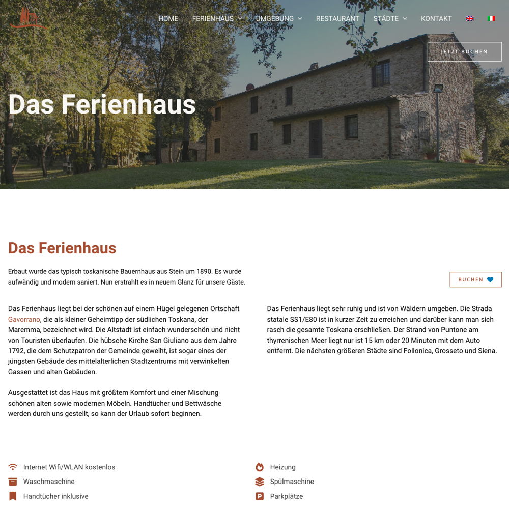 Eine Ferienhaus Webseite stand schon lange auf dem Wunschzettel. Mit der Casa Ferruccio wurde dieser Wunsch nun Wirklichkeit und wir konnten viel Erfahrung im Tourismusmarketing in diese Webseite einfließen lassen. Tatsächl ist die CAsa Ferruccio nicht das erste Projekt dieser Art, denn wir haben für Eifelurlaub Blockhaus Ferienhäuser in der schönen Eifel, ebenfalls eine Webseite mit Suchmaschinenoptimerung erstellt. Aber diese Seite ist nicht mehrsprachig und es handelt sich nicht um ein einzelnes Ferienhaus. Bei einem einzelnen Ferienhaus wie der Casa Ferruccio sind die Herausforderungen an Content und SEO ein wenig höher.