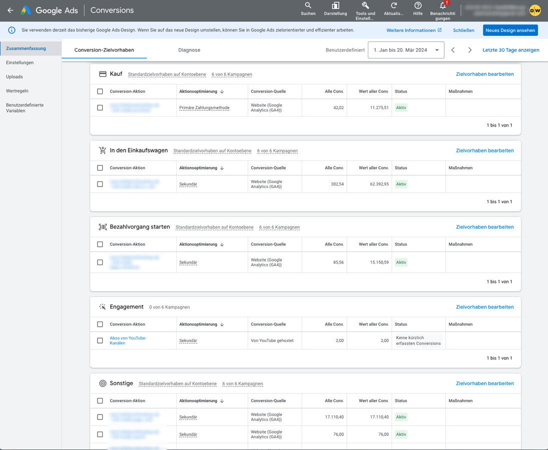 Conversion Messungen in Google Analytics und in der Google Ads Console
